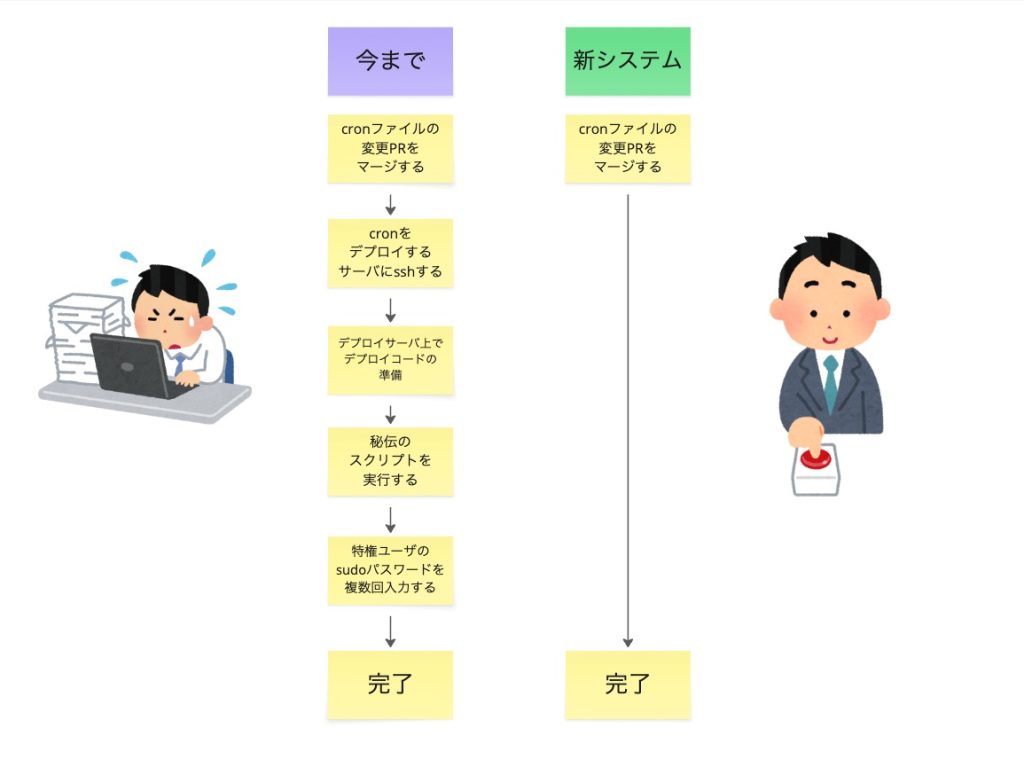 此前,负责 cron 部署的人员需时刻谨慎管理密码并执行部署工作。而通过本次改善,这类心理负担也得以消除。我们既减轻了操作人员的负担,又实现了系统整体更安全的状态。