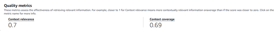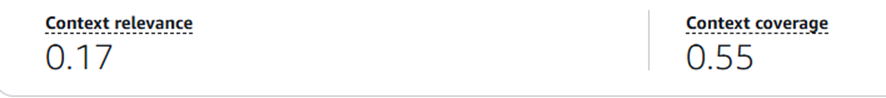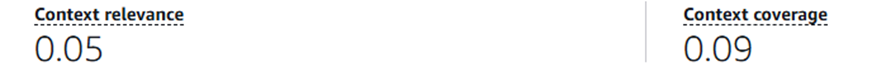结果显示,在 Context relevance(上下文相关性)和 Context coverage(上下文覆盖率)两项指标上,使用混合检索的 OpenSearch Serverless 的精度均优于仅使用向量检索的 S3 Vectors。