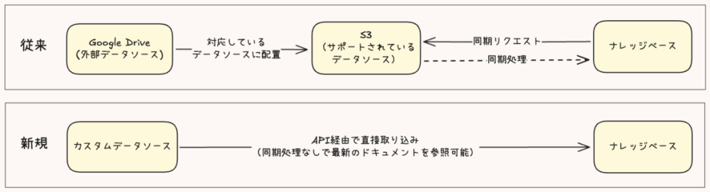 - 与 Bedrock 知识库不支持的数据源进行联动时手续繁琐
