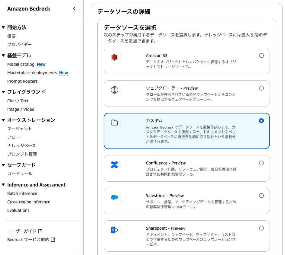 这次,我想尝试去年 12 月开始支持的 Bedrock 知识库的自定义数据源以及文档直接导入 API!