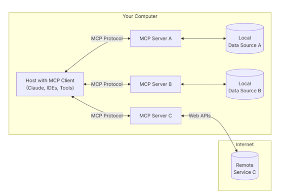 - 主机(Host):在 LLM 应用端(例如 Claude Desktop)进行 MCP 通信。