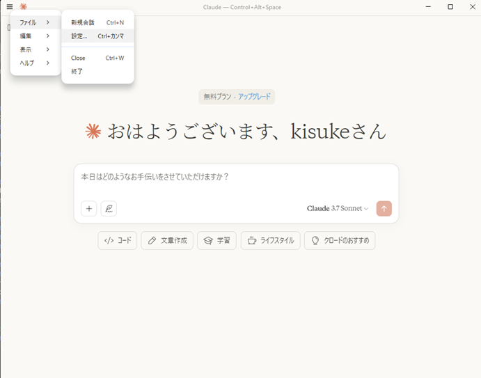 打开 Claude Desktop 后,从文件菜单中选择 “设置”,操作如下
