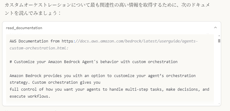 此外,该服务器采用了可自动适配新增文档的设计,因此能够构建始终以最新 AWS 文档为基础的 FAQ 应用等工具。