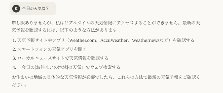 此外,如果询问与 AWS 文档无关的问题,会生成如下回答。由此可见,LLM 能够判断是否需要调用 MCP 服务器。